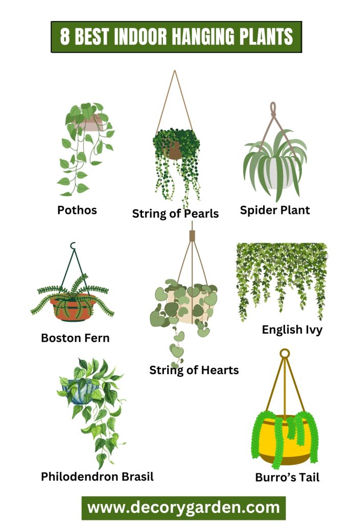 Adding types of indoor hanging plants to your living space is a fantastic way to bring life, color, and a touch of nature indoors. Not only do they look stunning, but they also purify the air and create a calming atmosphere. Whether you’re a seasoned plant parent or a beginner, here’s a curated list of the 8 best indoor hanging plants that are easy to care for and perfect for elevating your home decor.